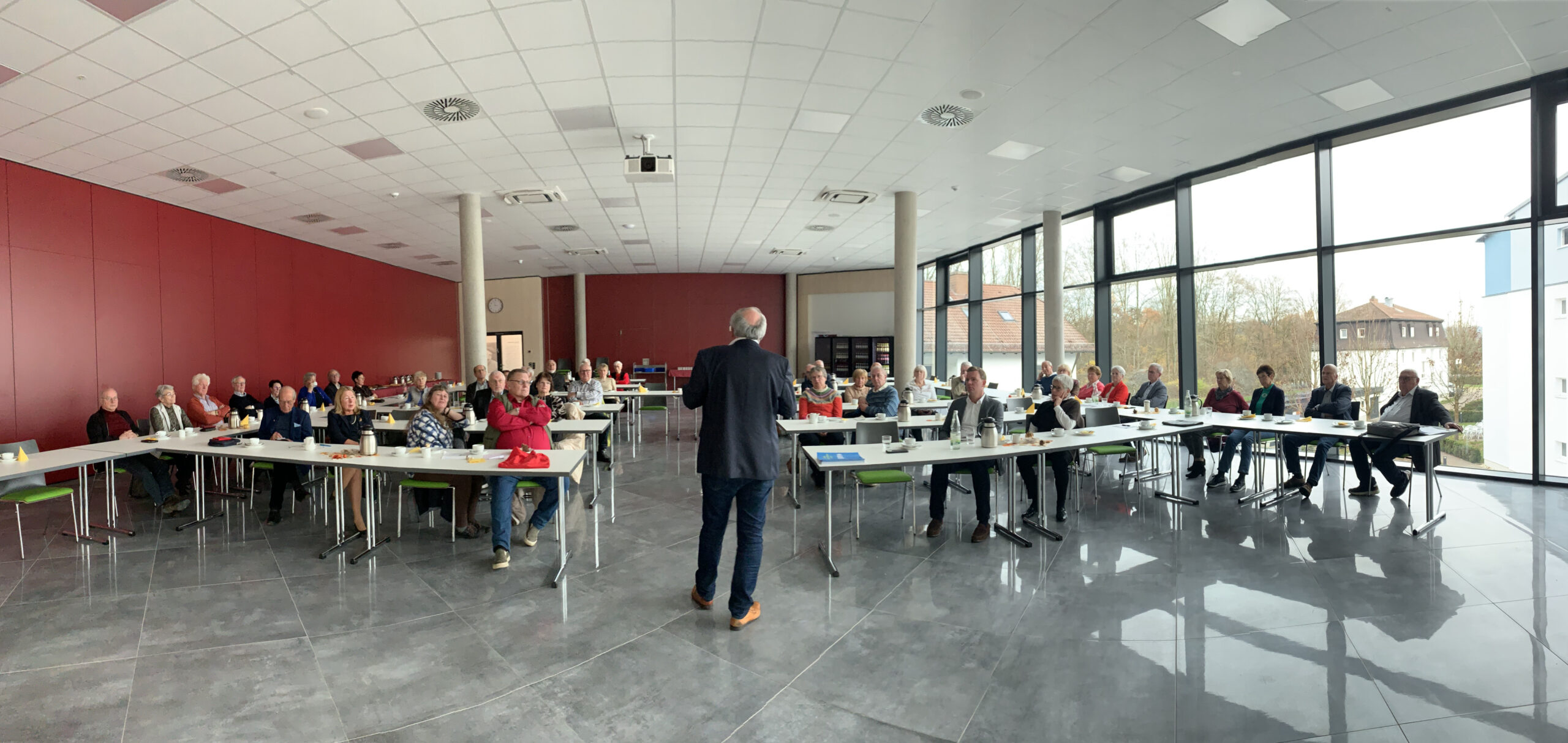 An seiner mit großem Elan vorgetragenen Rede spürten seine ca. 50 Zuhörer, dass er sein Amt in Würzburg mit Engagement und Freude ausführt. Nachdem er die zahlreichen sozialen und kulturellen Einrichtungen erwähnt hatte, die allein im Landkreis Bad Kissingen in der Verantwortung des Bezirks stehen, blickte er mit großer Sorge auf unseren Sozialstaat, dessen Struktur dringend reformiert werden müsse, wenn wir ihn nicht „an die Wand fahren wollen.“ Das ganze System müsse finanzierbar bleiben und deshalb sei es geboten, dass Bürger, Gemeinden, Landkreise und der Bezirk sich den Herausforderungen in enger Zusammenarbeit stellen: „Es geht nur gemeinsam!“ Wirtschaftspolitik und Sozialpolitik seien eng ineinander verwoben, und nur wenn auch der gesunde Menschenverstand das Handeln aller Beteiligten präge, könne der Sozialstaat der letzten 80 Jahre bewahrt werden.